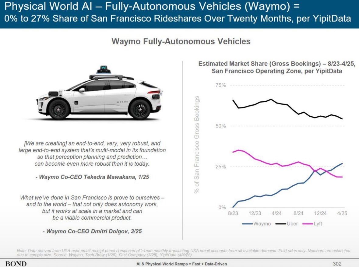 In San Francisco, Waymo has already passed Lyft by ride volume and is expected to pass Uber within 12 months.
